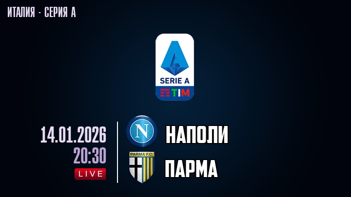 14 января 2026 года, мы предлагаем посмотреть онлайн трансляцию футбольного матча между футбольным клубом Наполи и футбольным клубом Парма, проходящего в рамках Серии А чемпионата Италии.