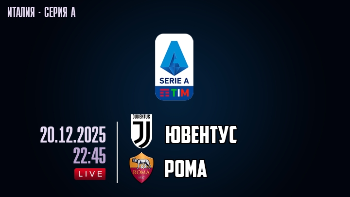 20 декабря 2025 года, мы предлагаем посмотреть онлайн трансляцию футбольного матча между футбольным клубом Ювентус и футбольным клубом Рома, проходящего в рамках Серии А чемпионата Италии.