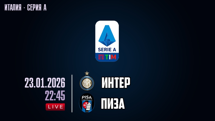 23 января 2026 года, мы предлагаем посмотреть онлайн трансляцию футбольного матча между футбольным клубом Интер и футбольным клубом Пиза, проходящего в рамках Серии А чемпионата Италии.