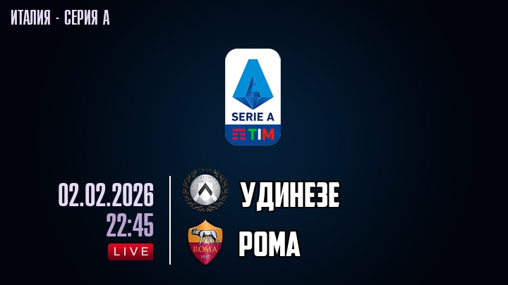 2 февраля 2026 года, мы предлагаем посмотреть онлайн трансляцию футбольного матча между футбольным клубом Удинезе и футбольным клубом Рома, проходящего в рамках Серии А чемпионата Италии.