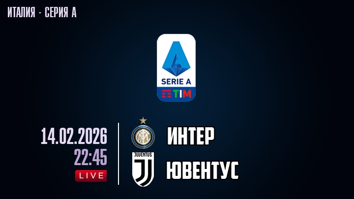 14 февраля 2026 года, мы предлагаем посмотреть онлайн трансляцию футбольного матча между футбольным клубом Интер и футбольным клубом Ювентус, проходящего в рамках Серии А чемпионата Италии.