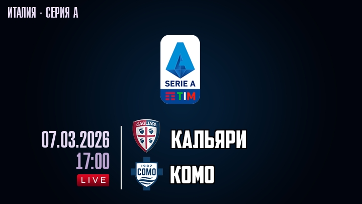 7 марта 2026 года, мы предлагаем посмотреть онлайн трансляцию футбольного матча между футбольным клубом Кальяри и футбольным клубом Комо, проходящего в рамках Серии А чемпионата Италии.