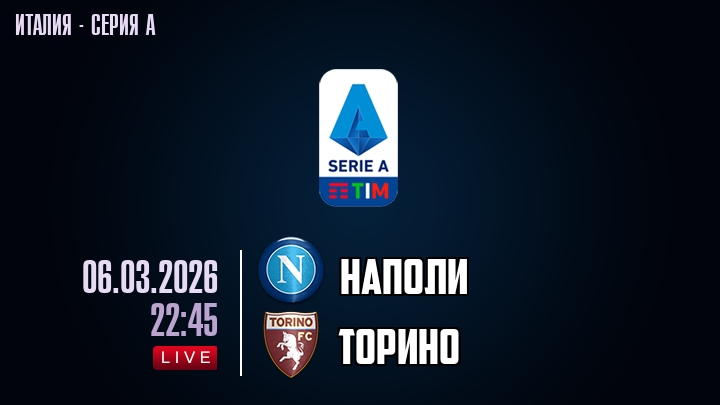 6 марта 2026 года, мы предлагаем посмотреть онлайн трансляцию футбольного матча между футбольным клубом Наполи и футбольным клубом Торино, проходящего в рамках Серии А чемпионата Италии.