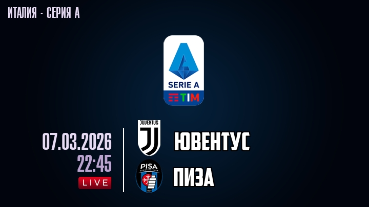 7 марта 2026 года, мы предлагаем посмотреть онлайн трансляцию футбольного матча между футбольным клубом Ювентус и футбольным клубом Пиза, проходящего в рамках Серии А чемпионата Италии.