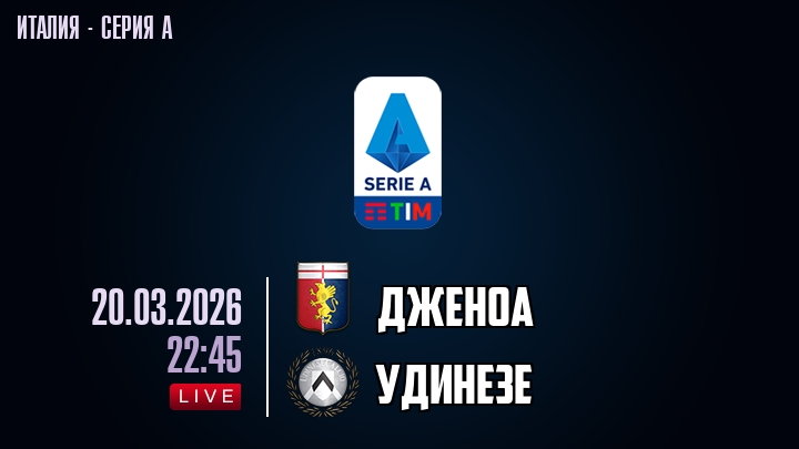 20 марта 2026 года, мы предлагаем посмотреть онлайн трансляцию футбольного матча между футбольным клубом Дженоа и футбольным клубом Удинезе, проходящего в рамках Серии А чемпионата Италии.