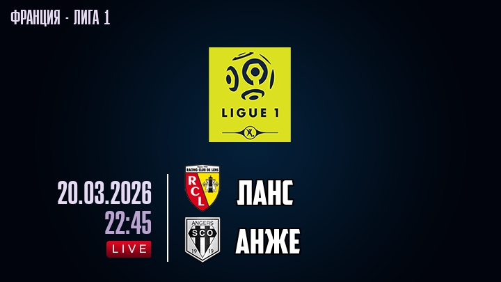 20 марта 2026 года, мы предлагаем посмотреть онлайн трансляцию футбольного матча между футбольным клубом Ланс и футбольным клубом Анже, проходящего в рамках Лиги 1 чемпионата Франция.