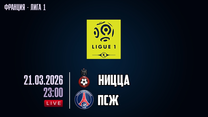 21 марта 2026 года, мы предлагаем посмотреть онлайн трансляцию футбольного матча между футбольным клубом Ницца и футбольным клубом ПСЖ, проходящего в рамках Лиги 1 чемпионата Франция.