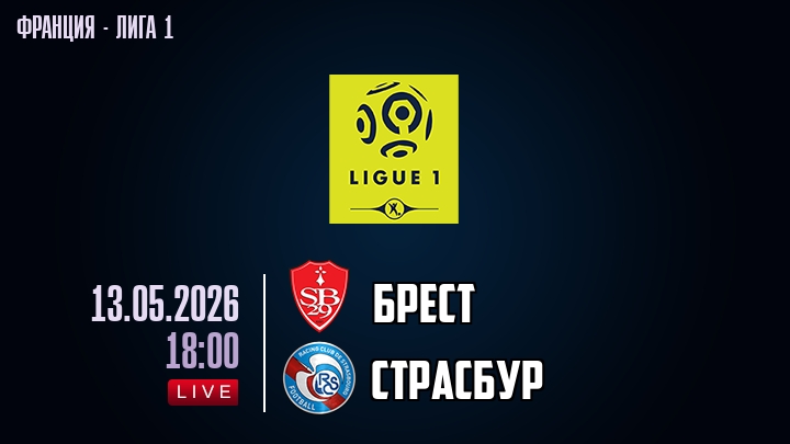 13 мая 2026 года, мы предлагаем посмотреть онлайн трансляцию футбольного матча между футбольным клубом Брест и футбольным клубом Страсбур, проходящего в рамках Лиги 1 чемпионата Франция.