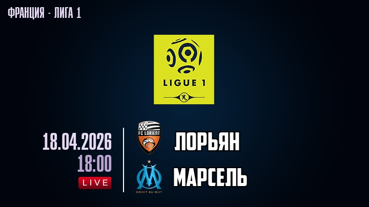 18 апреля 2026 года, мы предлагаем посмотреть онлайн трансляцию футбольного матча между футбольным клубом Лорьян и футбольным клубом Марсель, проходящего в рамках Лиги 1 чемпионата Франция.