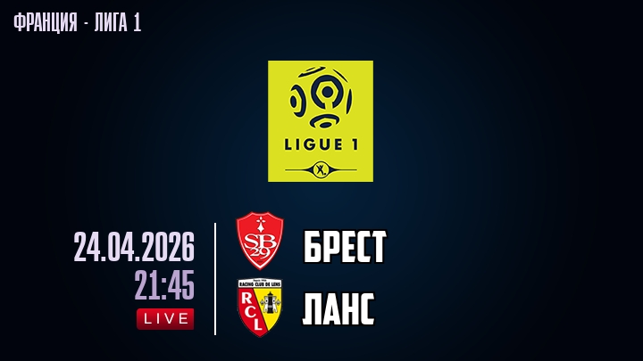 24 апреля 2026 года, мы предлагаем посмотреть онлайн трансляцию футбольного матча между футбольным клубом Брест и футбольным клубом Ланс, проходящего в рамках Лиги 1 чемпионата Франция.