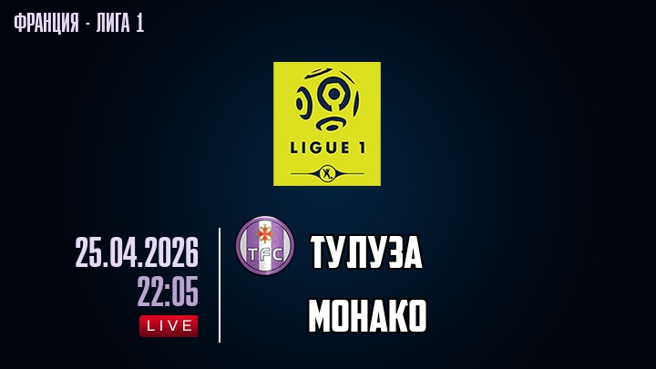 25 апреля 2026 года, мы предлагаем посмотреть онлайн трансляцию футбольного матча между футбольным клубом Тулуза и футбольным клубом Монако, проходящего в рамках Лиги 1 чемпионата Франция.