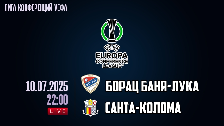 Лига конференций УЕФА Прямая трансляция: Борац Баня-Лука — Санта-Колома 10 июля 2025
