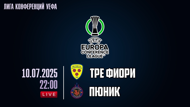 10 июля 2025 года, состоялась онлайн трансляция футбольного матча между футбольным клубом Тре Фиори и футбольным клубом Пюник, проходящего в рамках Лиги конференций УЕФА.