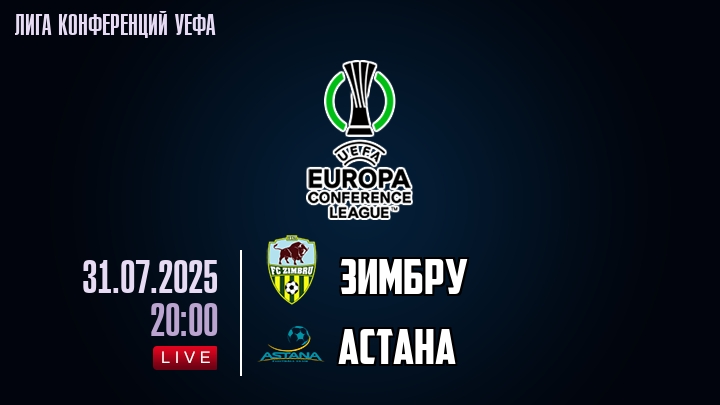 31 июля 2025 года, состоялась онлайн трансляция футбольного матча между футбольным клубом Зимбру и футбольным клубом Астана, проходящего в рамках Лиги конференций УЕФА.