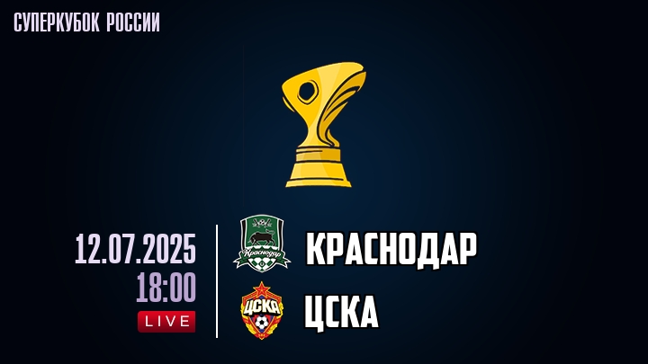12 июля 2025 года, состоялась онлайн трансляция футбольного матча между футбольным клубом Краснодар и футбольным клубом ЦСКА, проходящего в рамках Cуперкубка России.