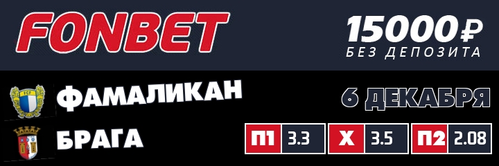 Узнать прогноз на матч Фамаликан — Брага, 6 декабря 2025