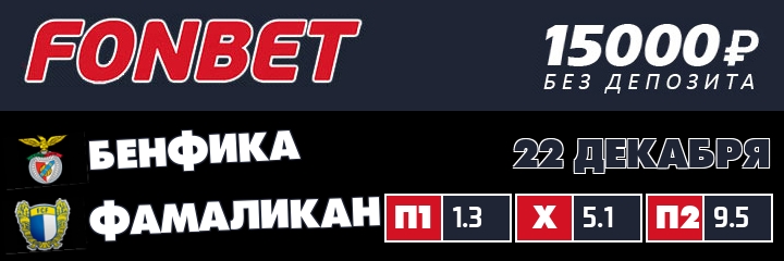 Узнать прогноз на матч Бенфика — Фамаликан, 22 декабря 2025