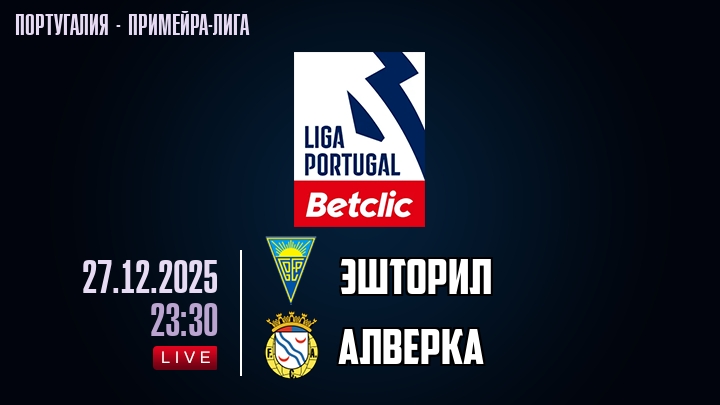 27 декабря 2025 года, мы предлагаем посмотреть онлайн трансляцию футбольного матча между футбольным клубом Эшторил и футбольным клубом Алверка, проходящего в рамках Примейра-лиги Португалии.