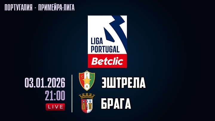 3 января 2026 года, состоялась онлайн трансляция футбольного матча между футбольным клубом Эштрела и футбольным клубом Брага, проходящего в рамках Примейра-лиги Португалии.