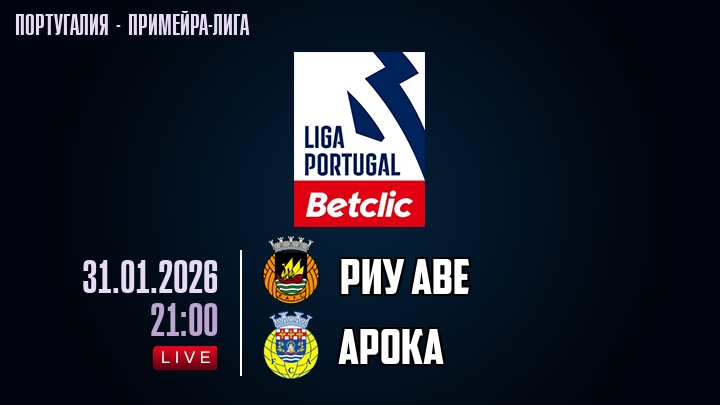 Сегодня, 31 января 2026 года, мы предлагаем посмотреть онлайн трансляцию футбольного матча между футбольным клубом Риу Аве и футбольным клубом Арока, проходящего в рамках Примейра-лиги Португалии.