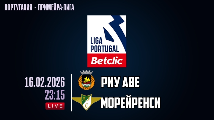 16 февраля 2026 года, мы предлагаем посмотреть онлайн трансляцию футбольного матча между футбольным клубом Риу Аве и футбольным клубом Морейренси, проходящего в рамках Примейра-лиги Португалии.