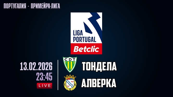 13 февраля 2026 года, мы предлагаем посмотреть онлайн трансляцию футбольного матча между футбольным клубом Тондела и футбольным клубом Алверка, проходящего в рамках Примейра-лиги Португалии.