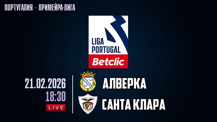 21 февраля 2026 года, мы предлагаем посмотреть онлайн трансляцию футбольного матча между футбольным клубом Алверка и футбольным клубом Санта Клара, проходящего в рамках Примейра-лиги Португалии.
