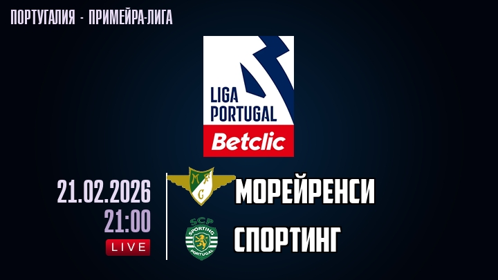 21 февраля 2026 года, мы предлагаем посмотреть онлайн трансляцию футбольного матча между футбольным клубом Морейренси и футбольным клубом Спортинг, проходящего в рамках Примейра-лиги Португалии.
