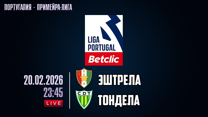 20 февраля 2026 года, мы предлагаем посмотреть онлайн трансляцию футбольного матча между футбольным клубом Эштрела и футбольным клубом Тондела, проходящего в рамках Примейра-лиги Португалии.