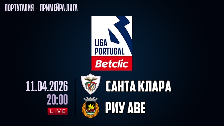 11 апреля 2026 года, мы предлагаем посмотреть онлайн трансляцию футбольного матча между футбольным клубом Санта Клара и футбольным клубом Риу Аве, проходящего в рамках Примейра-лиги Португалии.