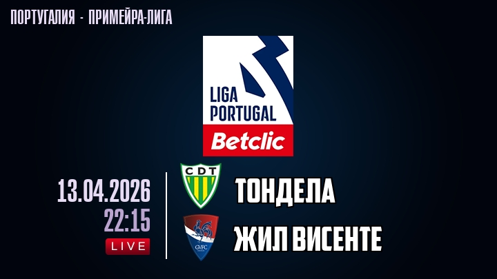 13 апреля 2026 года, мы предлагаем посмотреть онлайн трансляцию футбольного матча между футбольным клубом Тондела и футбольным клубом Жил Висенте, проходящего в рамках Примейра-лиги Португалии.