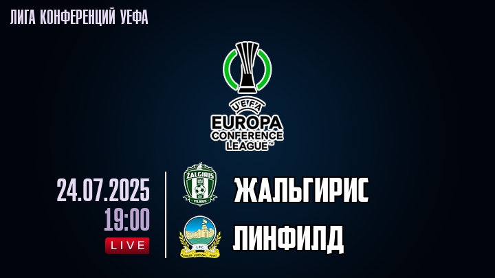 24 июля 2025 года, состоялась онлайн трансляция футбольного матча между футбольным клубом Жальгирис и футбольным клубом Линфилд, проходящего в рамках Лиги конференций УЕФА.