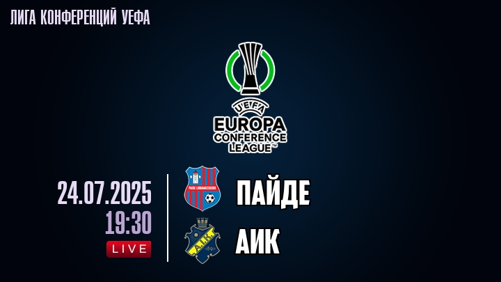 24 июля 2025 года, состоялась онлайн трансляция футбольного матча между футбольным клубом Пайде и футбольным клубом АИК, проходящего в рамках Лиги конференций УЕФА.