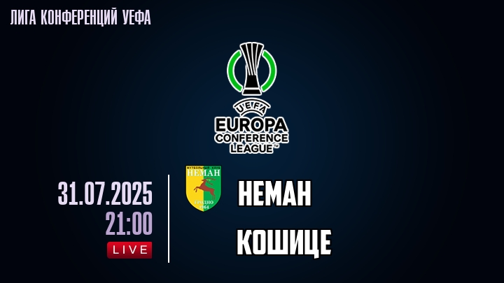 31 июля 2025 года, состоялась онлайн трансляция футбольного матча между футбольным клубом Неман и футбольным клубом Кошице, проходящего в рамках Лиги конференций УЕФА.