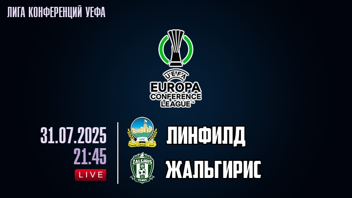 31 июля 2025 года, состоялась онлайн трансляция футбольного матча между футбольным клубом Линфилд и футбольным клубом Жальгирис, проходящего в рамках Лиги конференций УЕФА.