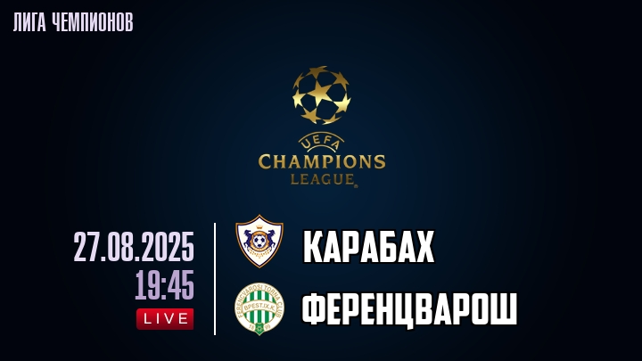 27 августа 2025 года, состоялась онлайн трансляция футбольного матча между футбольным клубом Карабах и футбольным клубом Ференцварош, проходящего в рамках Лиги Чемпионов.