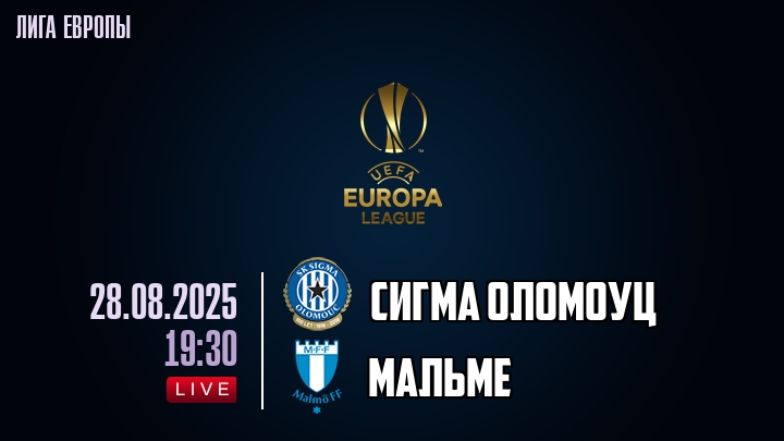 28 августа 2025 года, состоялась онлайн трансляция футбольного матча между футбольным клубом Сигма Оломоуц и футбольным клубом Мальме, проходящего в рамках Лиги Европы.