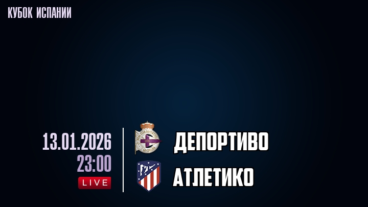 13 января 2026 года, мы предлагаем посмотреть онлайн трансляцию футбольного матча между футбольным клубом Депортиво и футбольным клубом Атлетико, проходящего в рамках Кубка Испании.