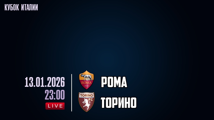 13 января 2026 года, мы предлагаем посмотреть онлайн трансляцию футбольного матча между футбольным клубом Рома и футбольным клубом Торино, проходящего в рамках Кубка Италии.