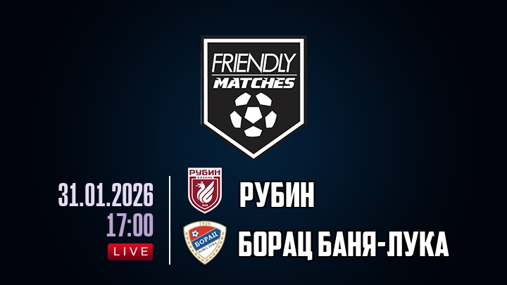 Сегодня, 31 января 2026 года, мы предлагаем посмотреть онлайн трансляцию футбольного матча между футбольным клубом Рубин и футбольным клубом Борац Баня-Лука, проходящего в рамках .