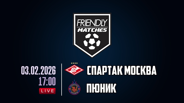 3 февраля 2026 года, мы предлагаем посмотреть онлайн трансляцию футбольного матча между футбольным клубом Спартак Москва и футбольным клубом Пюник, проходящего в рамках .