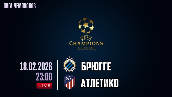 18 февраля 2026 года, мы предлагаем посмотреть онлайн трансляцию футбольного матча между футбольным клубом Брюгге и футбольным клубом Атлетико, проходящего в рамках Лиги Чемпионов.