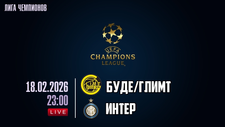 18 февраля 2026 года, мы предлагаем посмотреть онлайн трансляцию футбольного матча между футбольным клубом БудеГлимт и футбольным клубом Интер, проходящего в рамках Лиги Чемпионов.