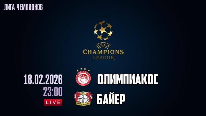 18 февраля 2026 года, мы предлагаем посмотреть онлайн трансляцию футбольного матча между футбольным клубом Олимпиакос и футбольным клубом Байер, проходящего в рамках Лиги Чемпионов.