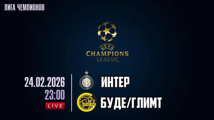 24 февраля 2026 года, мы предлагаем посмотреть онлайн трансляцию футбольного матча между футбольным клубом Интер и футбольным клубом БудеГлимт, проходящего в рамках Лиги Чемпионов.