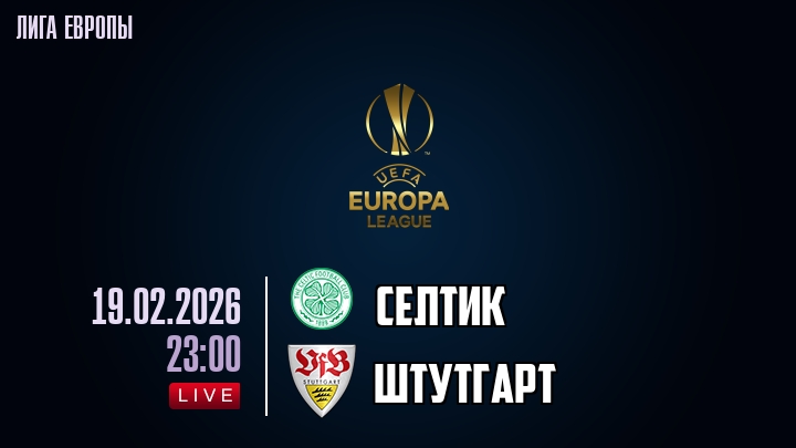 19 февраля 2026 года, мы предлагаем посмотреть онлайн трансляцию футбольного матча между футбольным клубом Селтик и футбольным клубом Штутгарт, проходящего в рамках Лиги Европы.