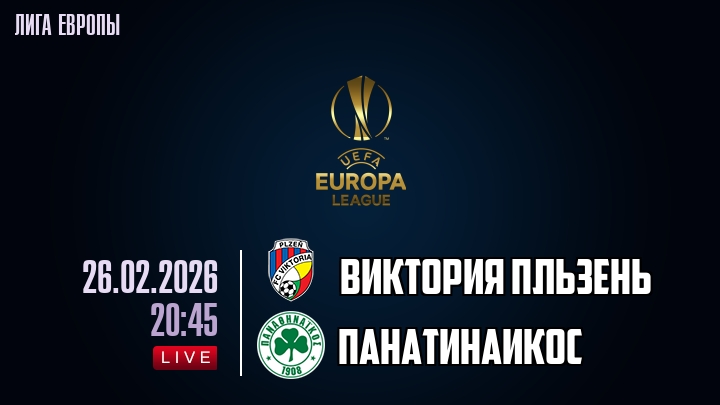 26 февраля 2026 года, мы предлагаем посмотреть онлайн трансляцию футбольного матча между футбольным клубом Виктория Пльзень и футбольным клубом Панатинаикос, проходящего в рамках Лиги Европы.