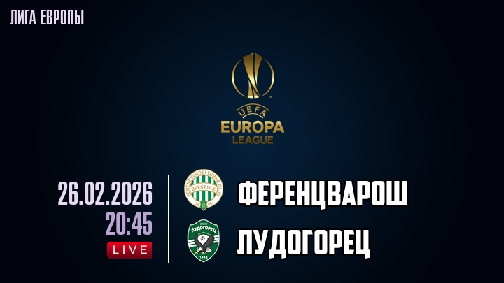 26 февраля 2026 года, мы предлагаем посмотреть онлайн трансляцию футбольного матча между футбольным клубом Ференцварош и футбольным клубом Лудогорец, проходящего в рамках Лиги Европы.