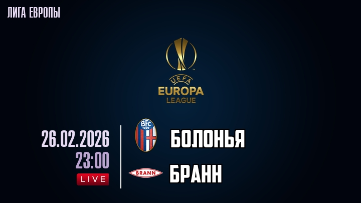 26 февраля 2026 года, мы предлагаем посмотреть онлайн трансляцию футбольного матча между футбольным клубом Болонья и футбольным клубом Бранн, проходящего в рамках Лиги Европы.
