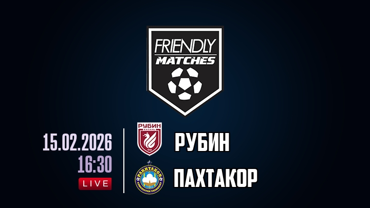 15 февраля 2026 года, мы предлагаем посмотреть онлайн трансляцию футбольного матча между футбольным клубом Рубин и футбольным клубом Пахтакор, проходящего в рамках .